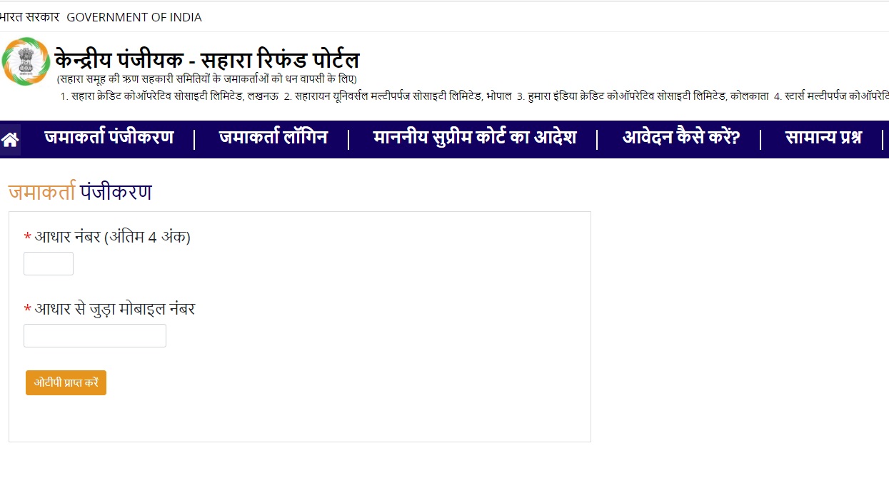 Sahara Refund Portal Login Direct Link Claim Depositor Registration Apply Online Jharkhand